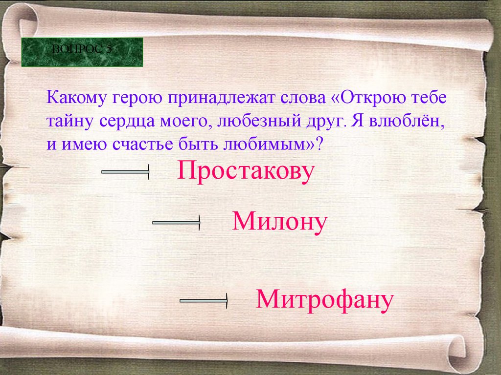 ВОПРОС 5Какому герою принадлежат слова «Открою тебе