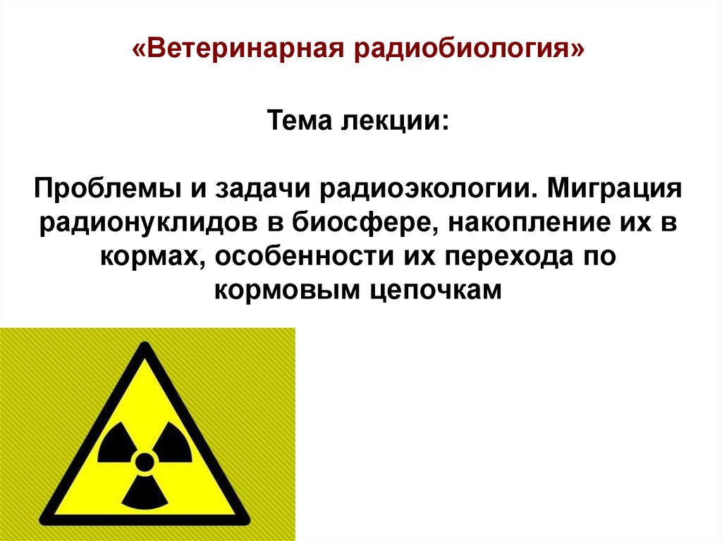 «Ветеринарная радиобиология»Тема лекции: