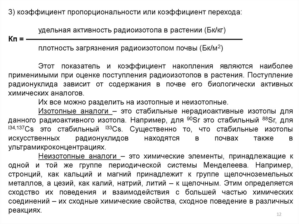 изотопов (химических аналогов), свойства самой почвы, коэффициенты