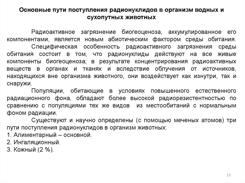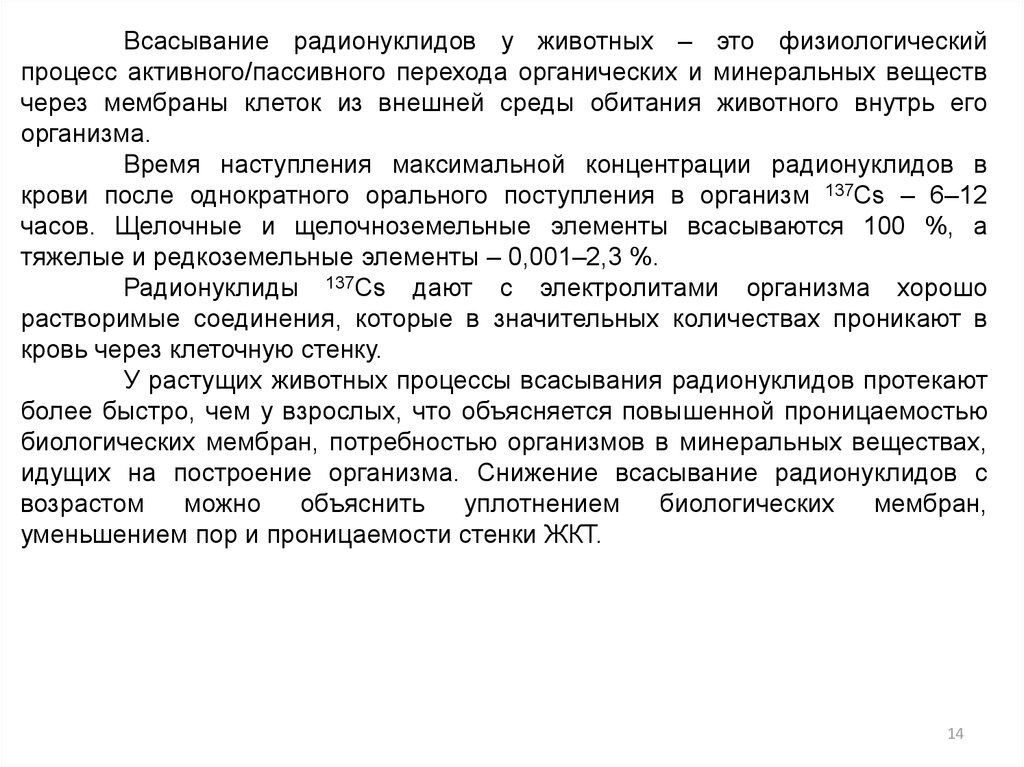 животного происхождения. Причем радионуклиды, поступающие в организм