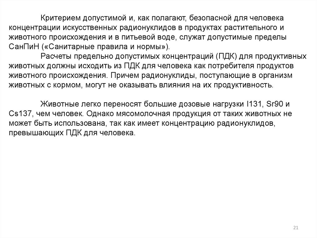 животных должны исходить из ПДК для человека как потребителя продуктов