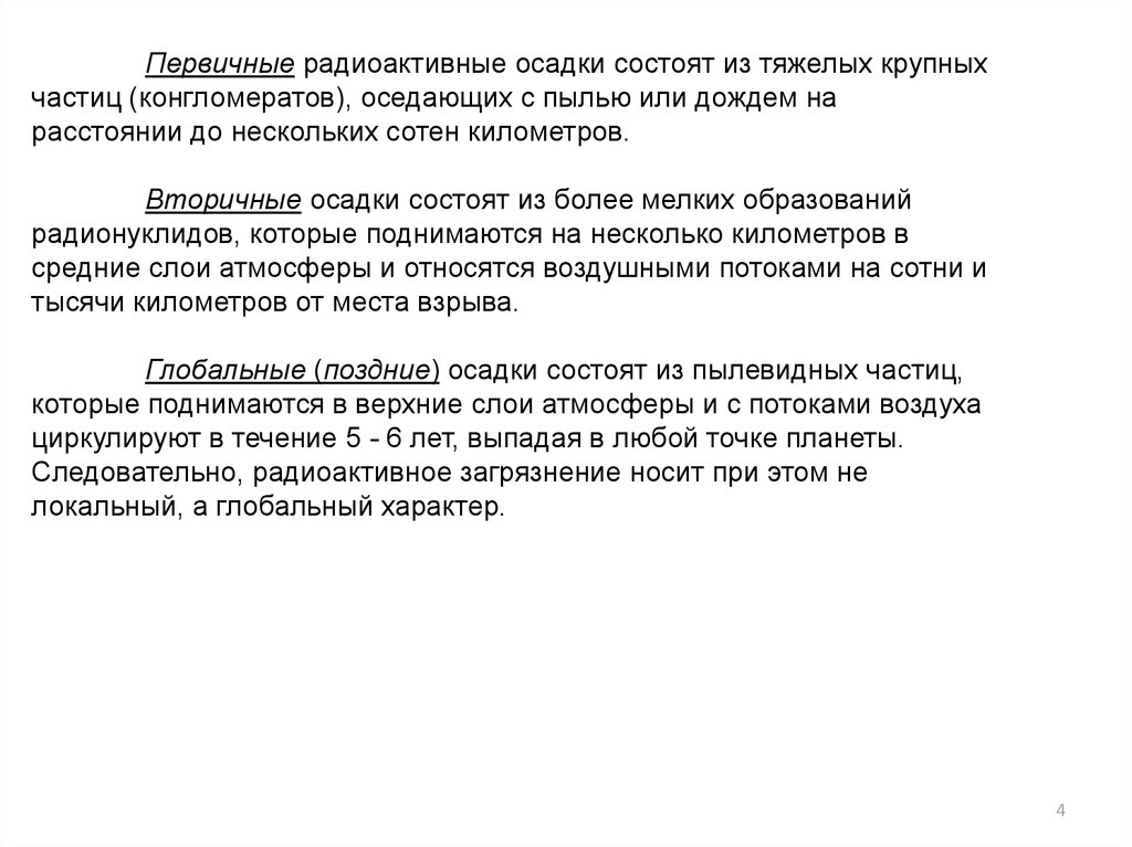 Первичные радиоактивные осадки состоят из тяжелых крупныхчастиц (конгломератов), оседающих с пылью или дождем на