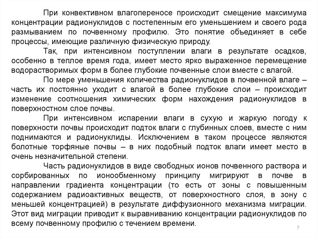 Этот вид миграции приводит к выравниванию концентрации радионуклидов по