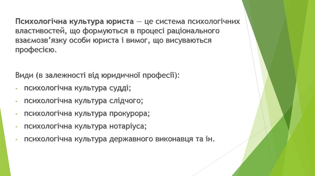 Психологічна культура юриста — це система психологічнихвластивостей, що формуються в процесі раціонального