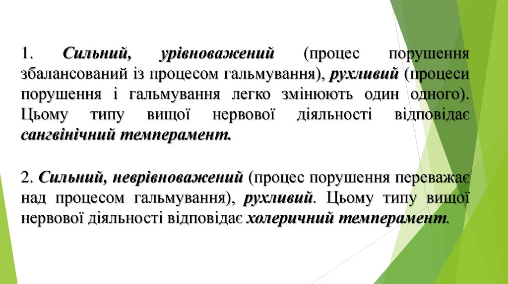 збалансований із процесом гальмування), рухливий (процеси