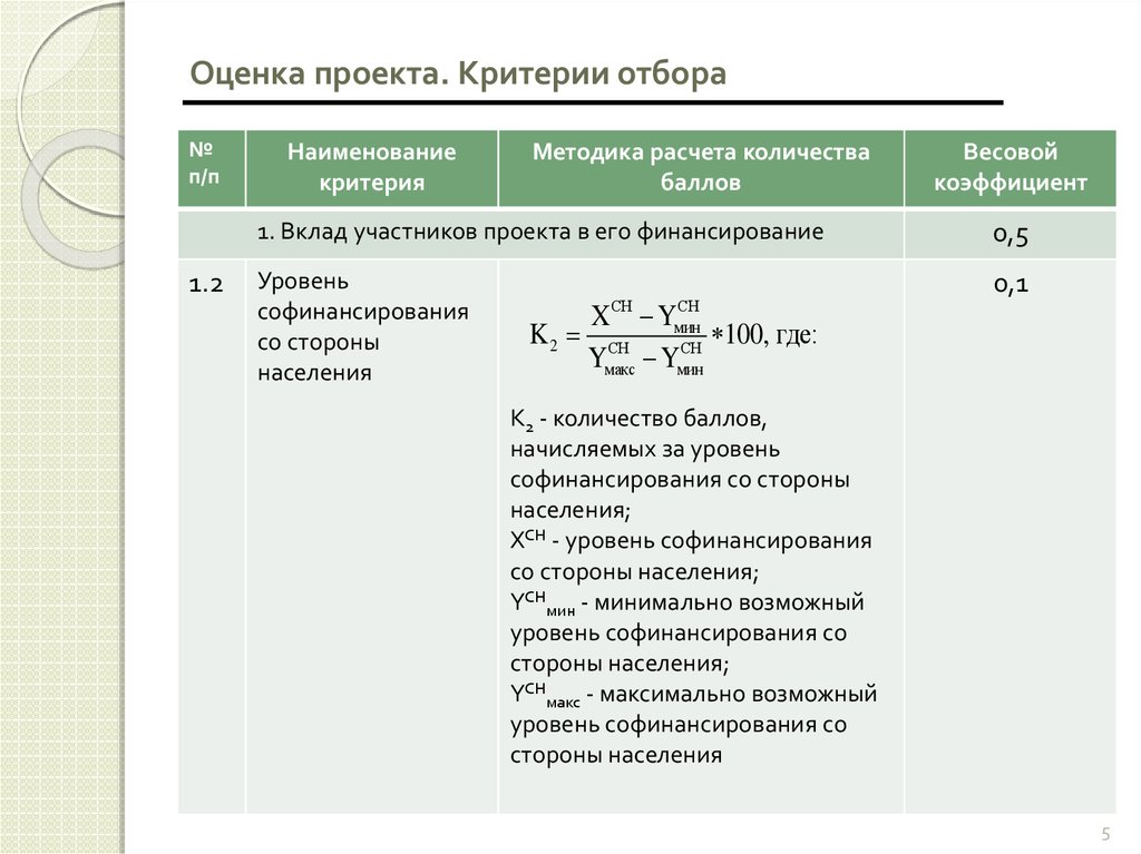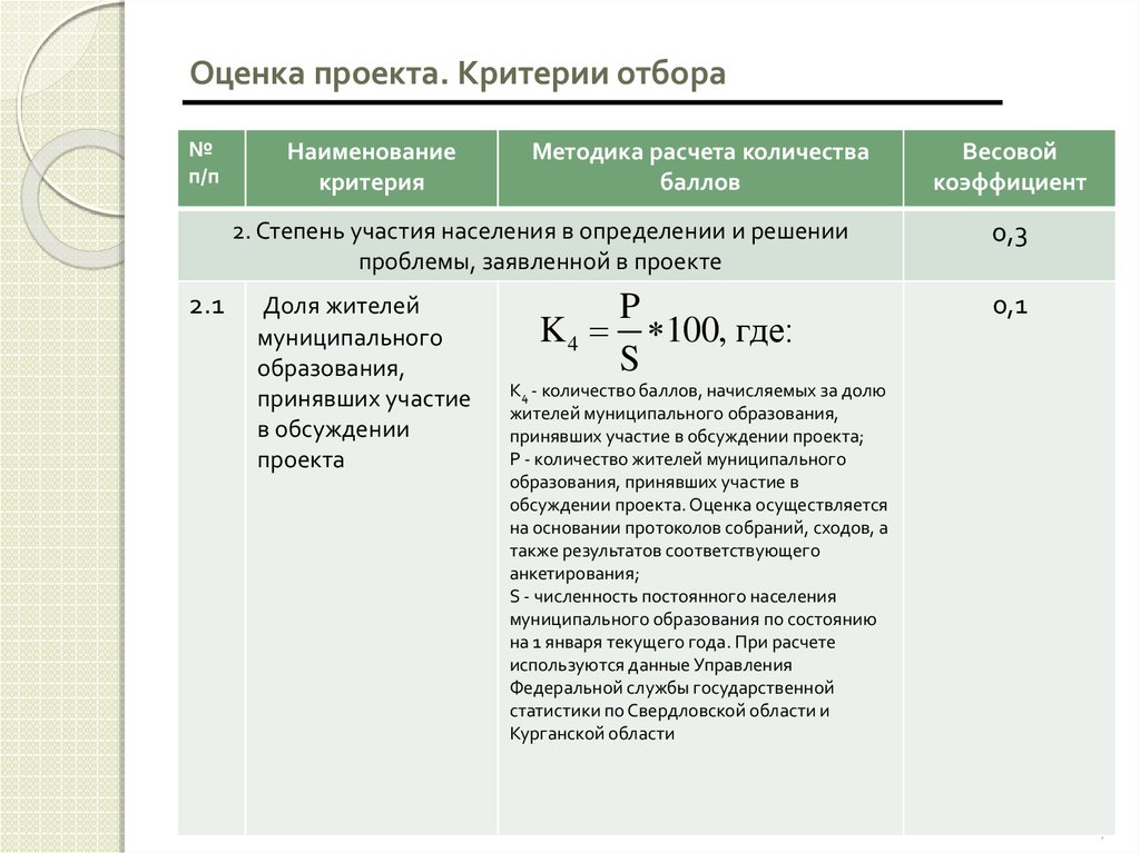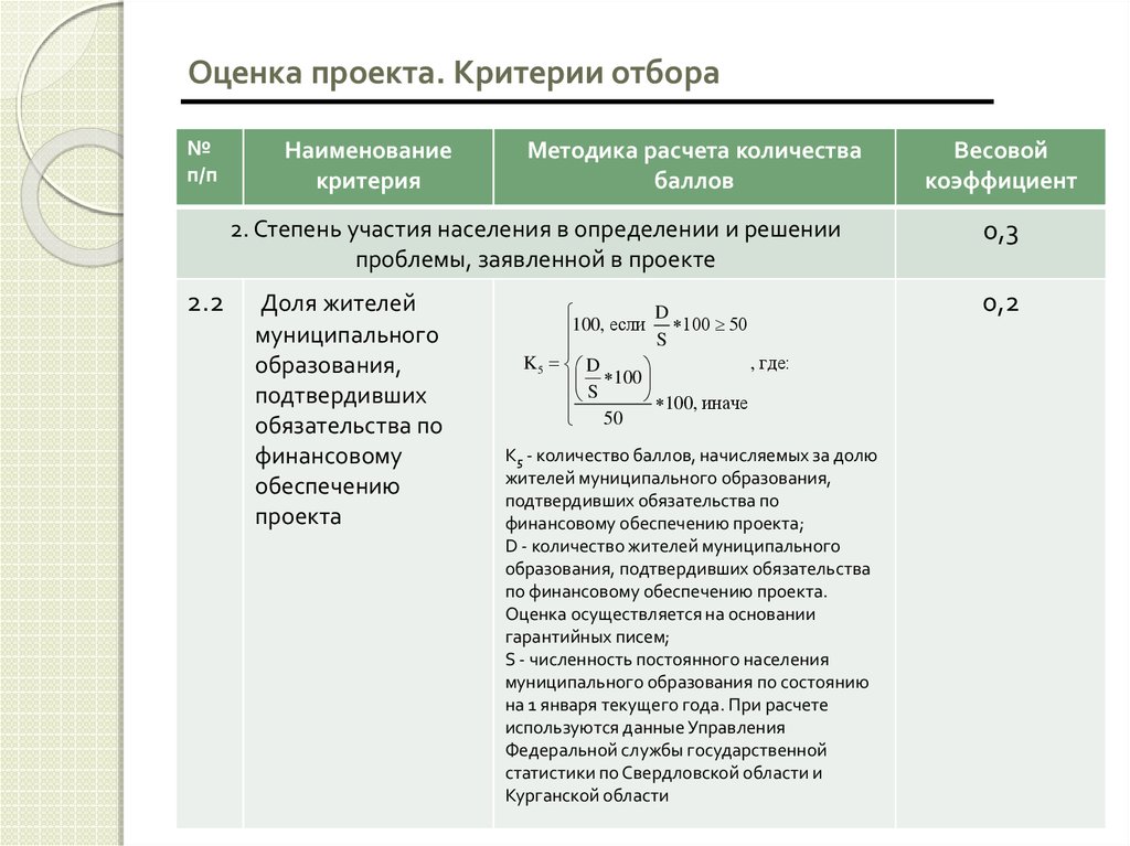Оценка проекта. Критерии отбора№