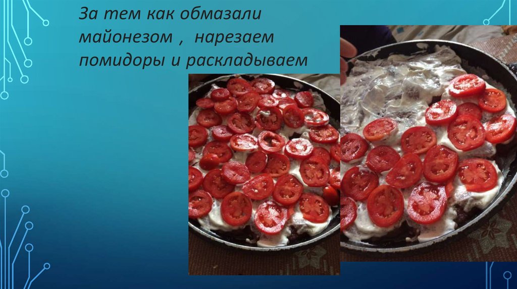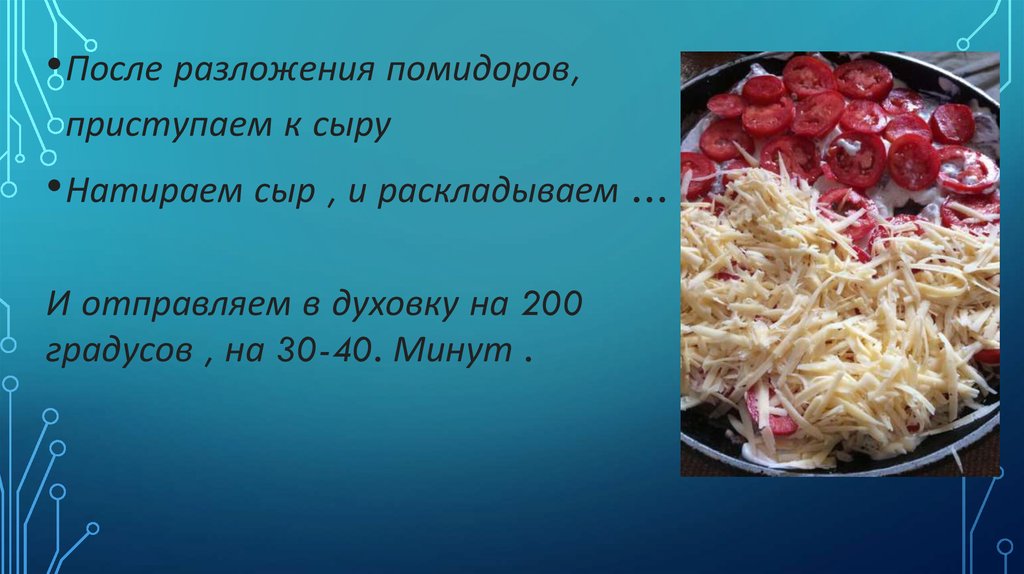 • После разложения помидоров,приступаем к сыру