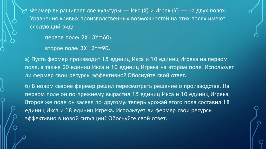 единиц Икса и 18 единиц Игрека. Использует ли фермер свои ресурсы