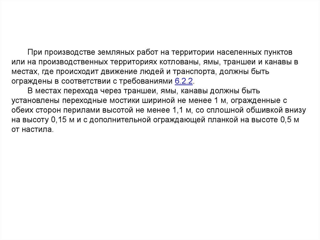 При производстве земляных работ на территории населенных пунктовили на производственных территориях котлованы, ямы, траншеи и канавы в