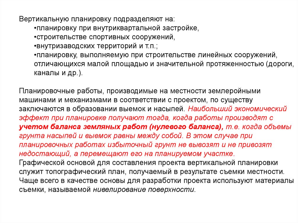 Мероприятия по вертикальной планировке в значительной мере зависят от