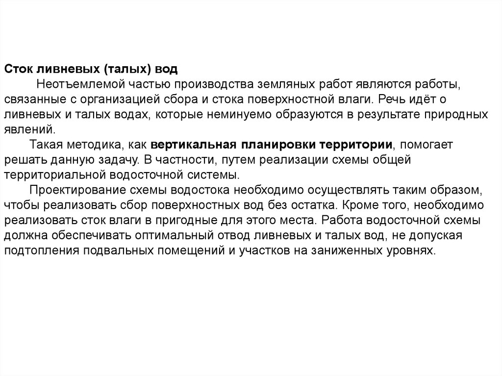 мест с помощью вертикальной планировки, обеспечивают нормальный отвод