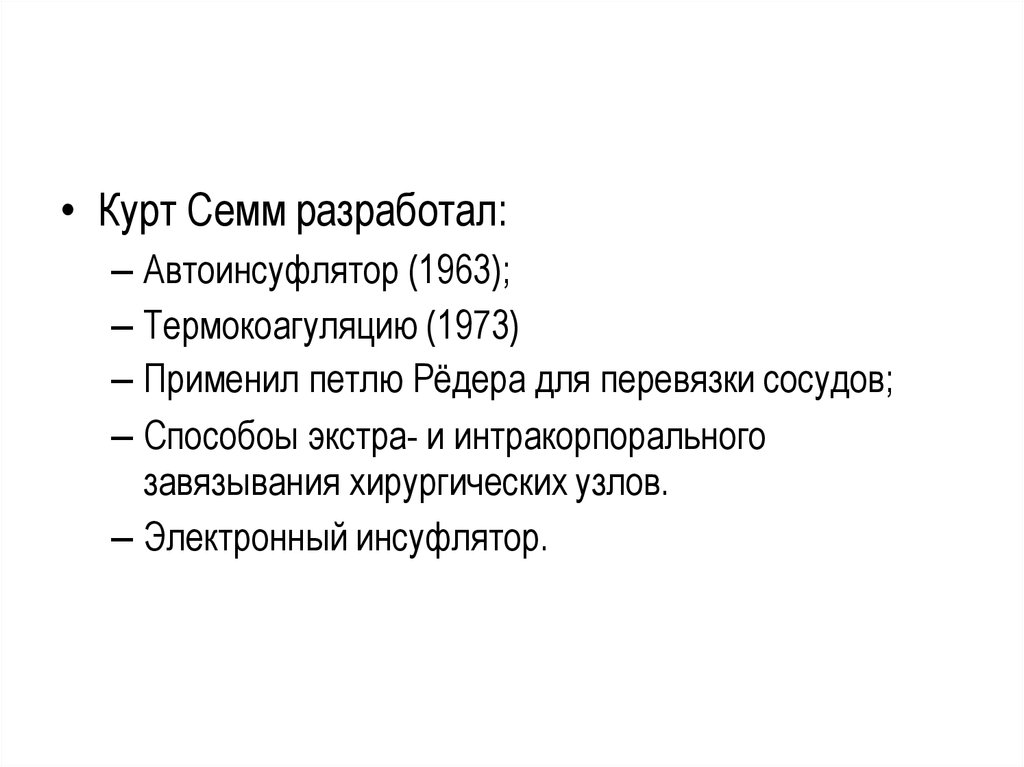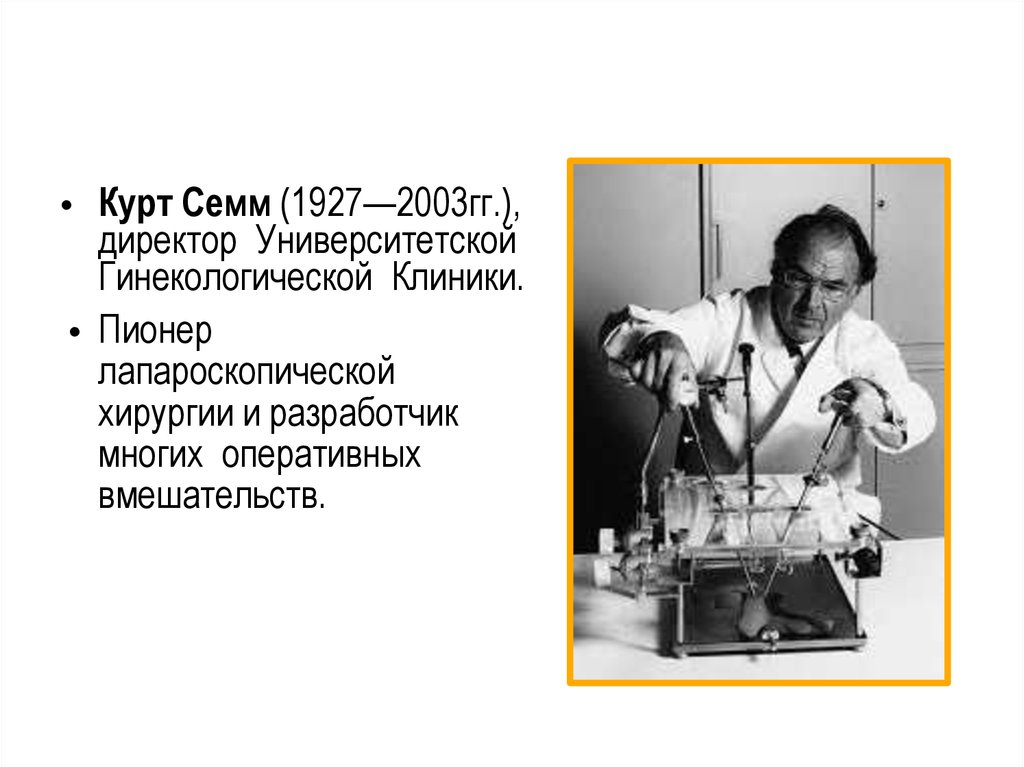 • Курт Семм разработал:– Автоинсуфлятор (1963);