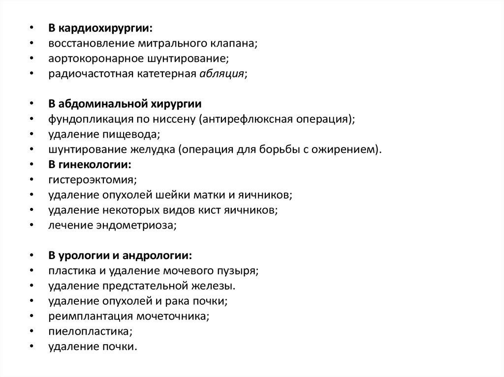 • Лапароскопические операции — на органах брюшной полости ималого таза;