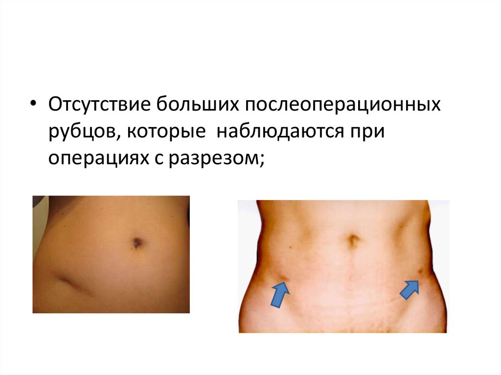 • Отсутствие больших послеоперационныхрубцов, которые наблюдаются при