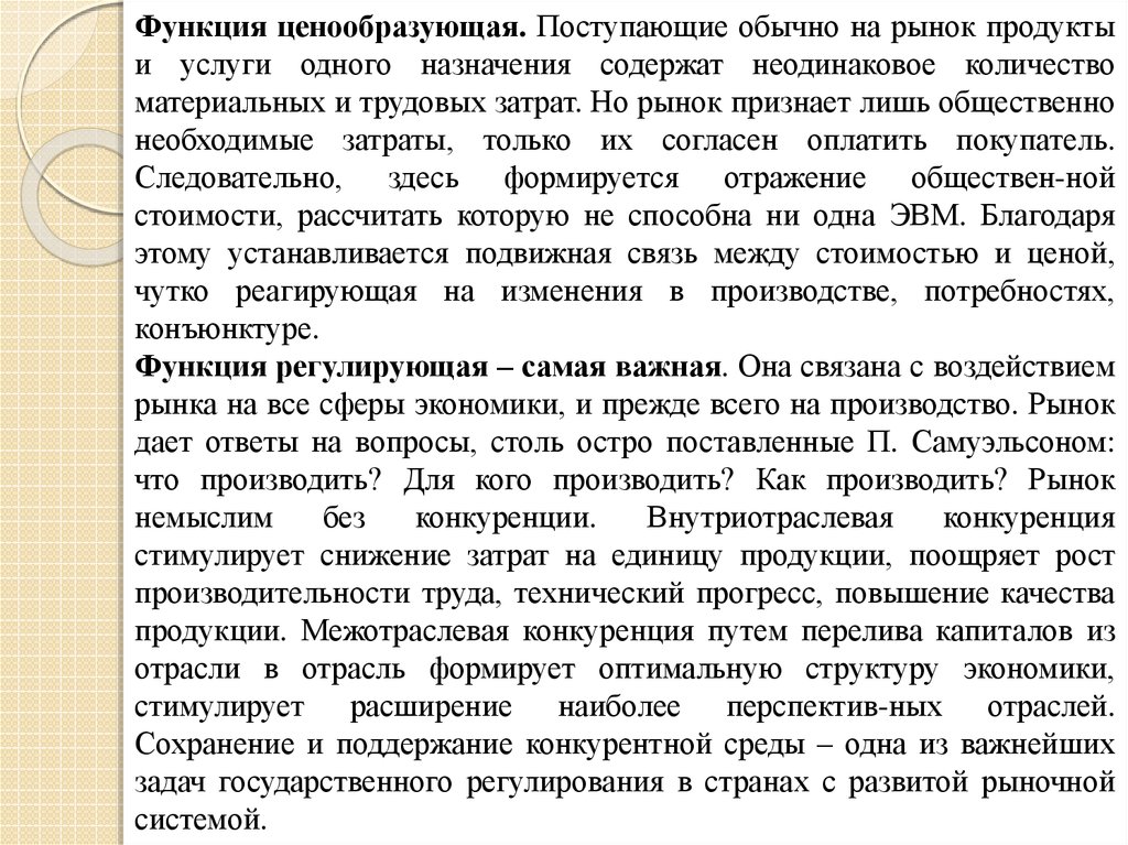 Функция ценообразующая. Поступающие обычно на рынок продуктыи услуги одного назначения содержат неодинаковое количество