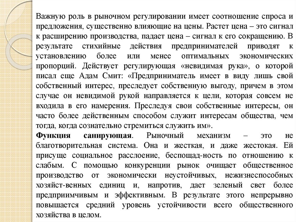 пропорций. Действует регулирующая «невидимая рука», о которой