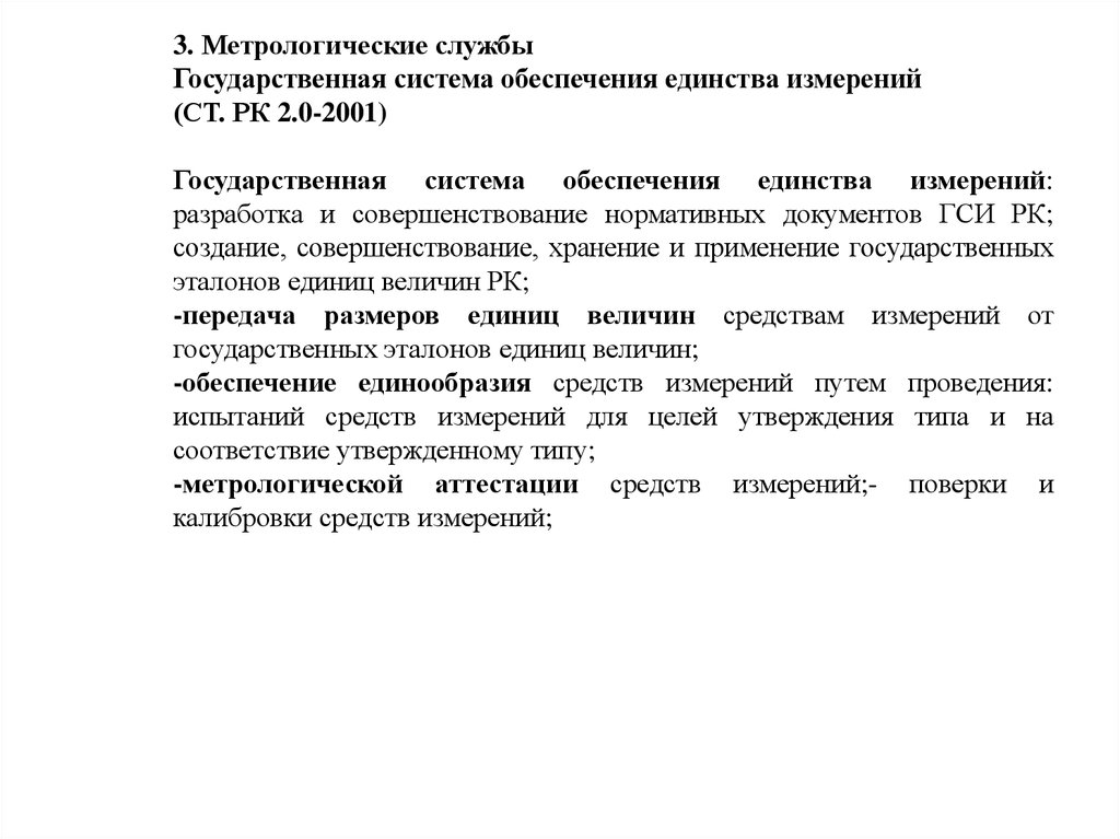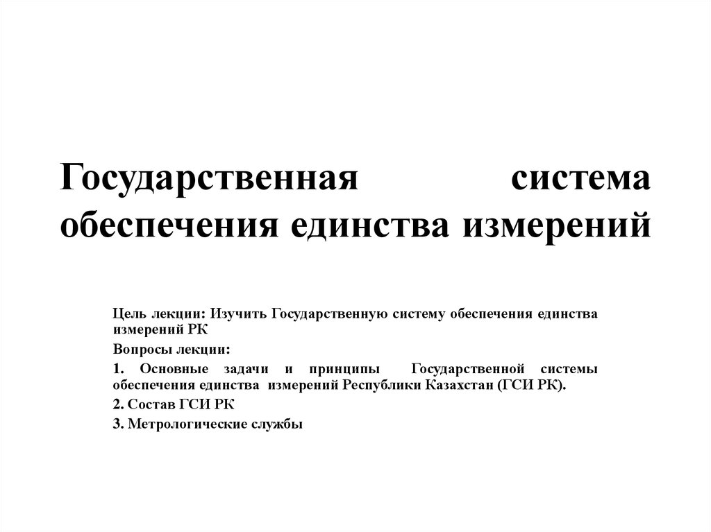 Цель лекции: Изучить Государственную систему обеспечения единстваизмерений РК