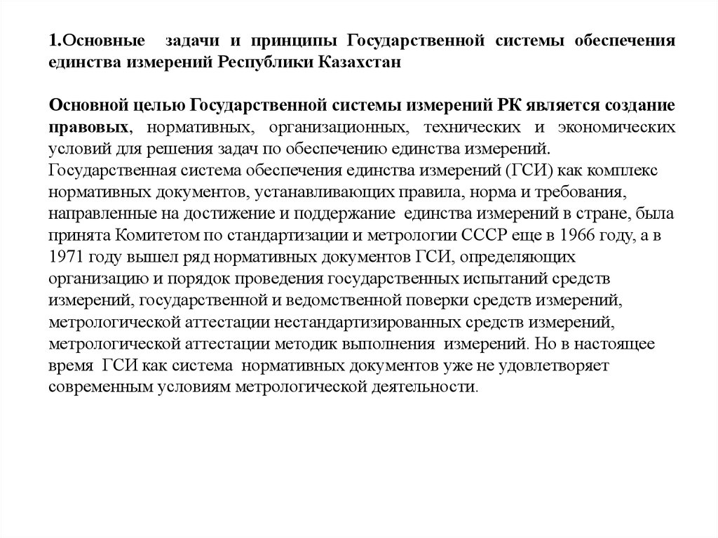 1.Основные задачи и принципы Государственной системы обеспеченияединства измерений Республики Казахстан
