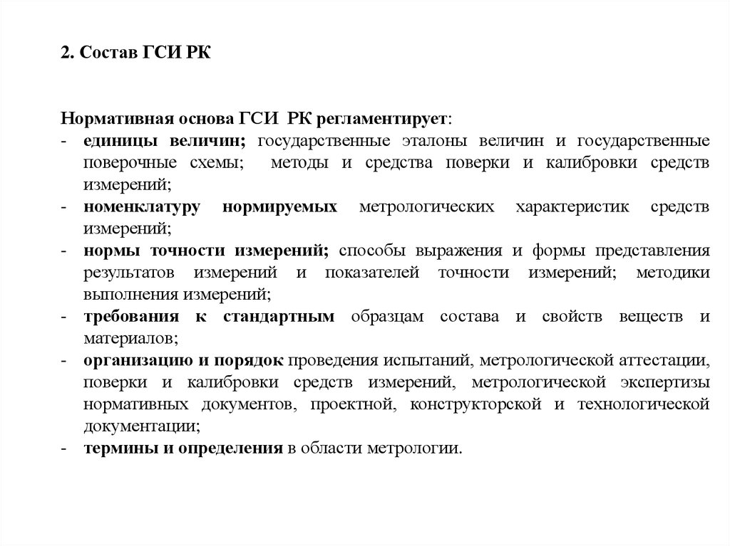 2. Состав ГСИ РКНормативная основа ГСИ РК регламентирует: