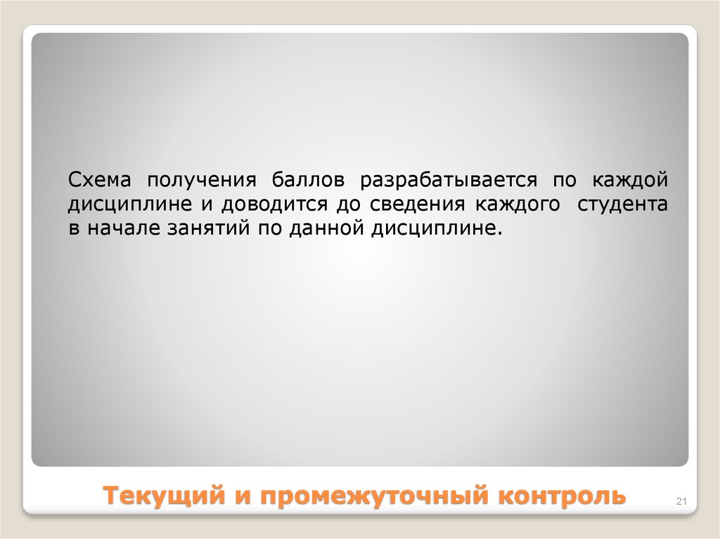 Схема получения баллов разрабатывается по каждойдисциплине и доводится до сведения каждого студента