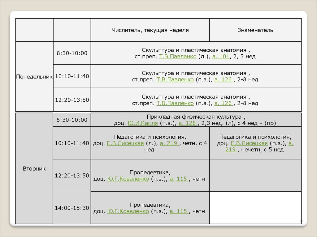 ст.преп. Т.В.Павленко (л.), а. 101, 2, 3 нед