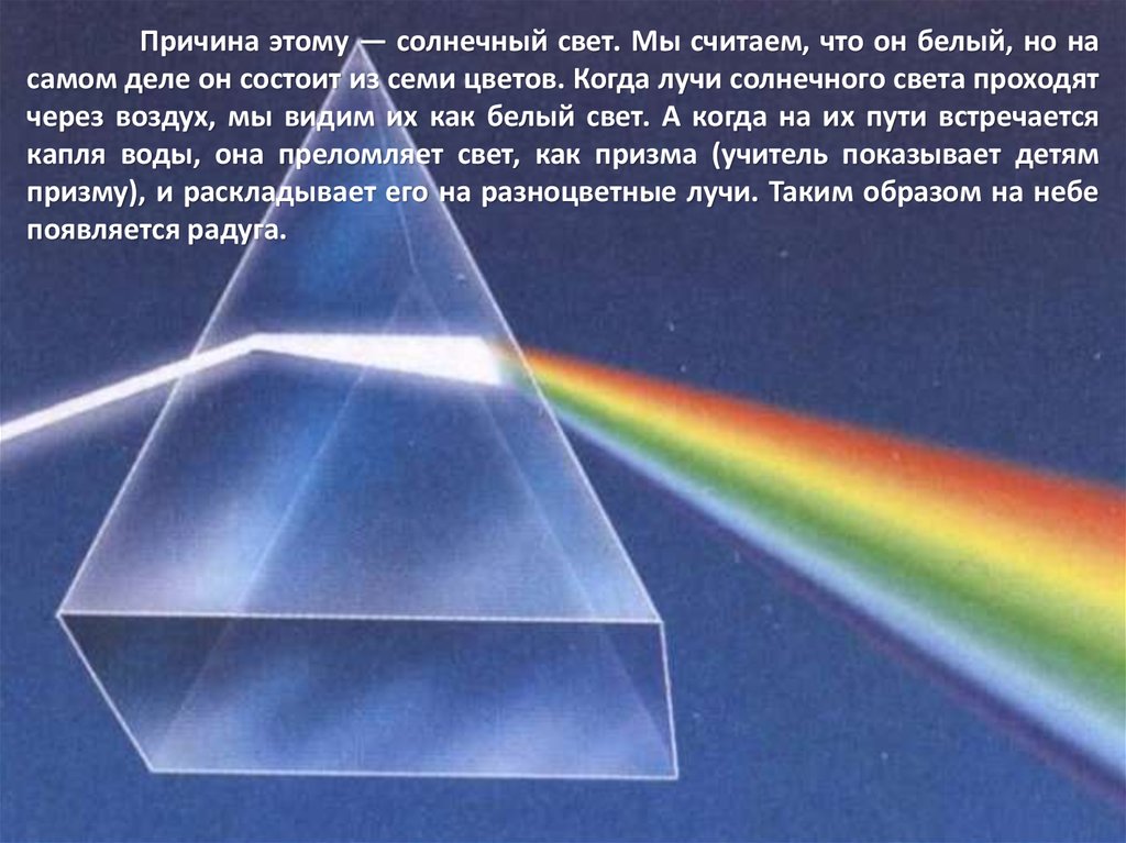 призму), и раскладывает его на разноцветные лучи. Таким образом на небе