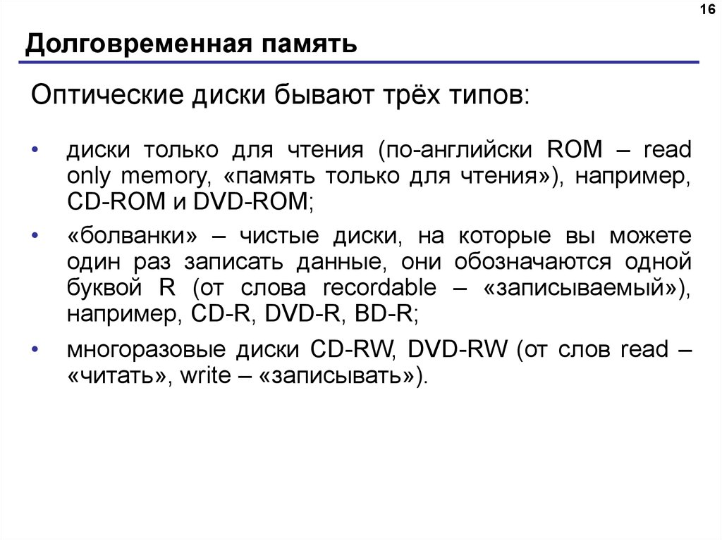 (ПЗУ). Данные в ПЗУ можно только прочитать,