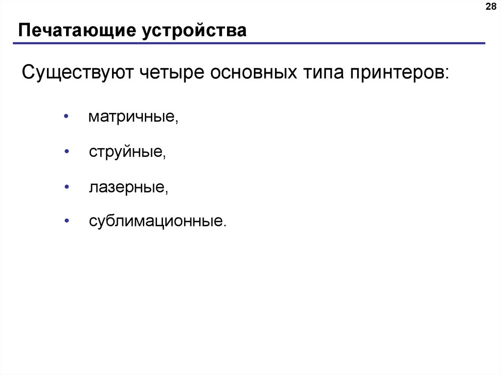 • Существуют четыре основных типа принтеров: