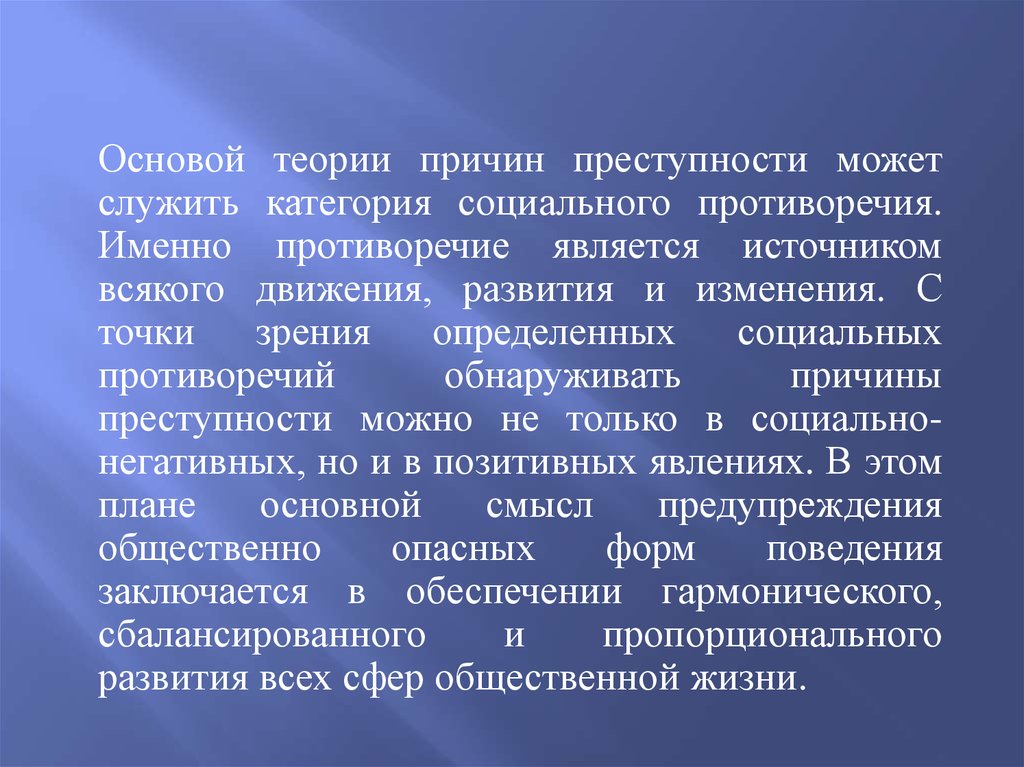 Основой теории причин преступности можетслужить категория социального противоречия.