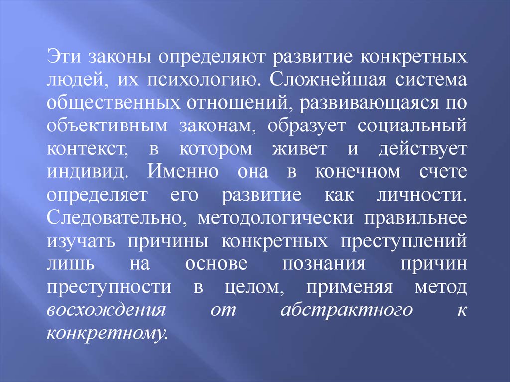 Эти законы определяют развитие конкретныхлюдей, их психологию. Сложнейшая система