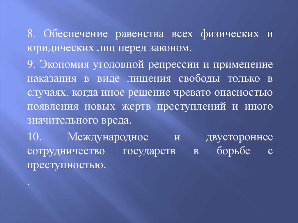 8. Обеспечение равенства всех физических июридических лиц перед законом.