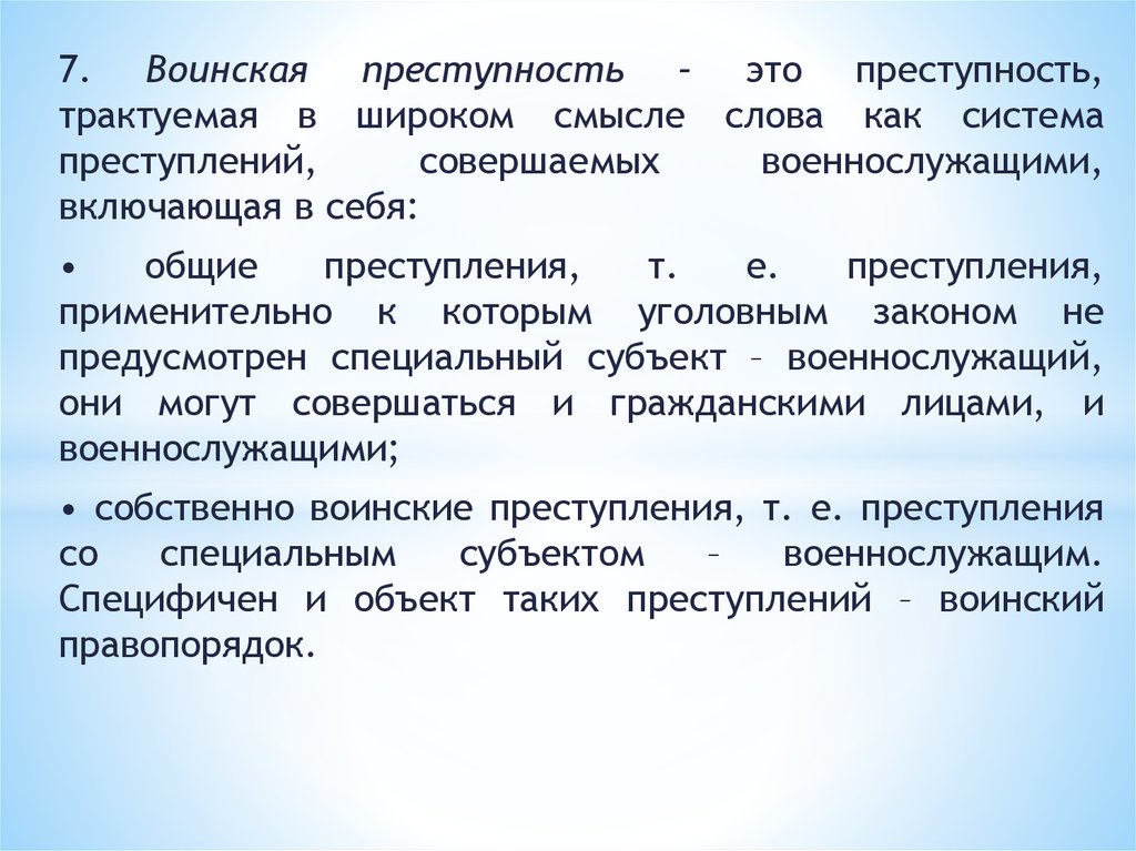 7. В криминологии выделяют следующие виды преступности