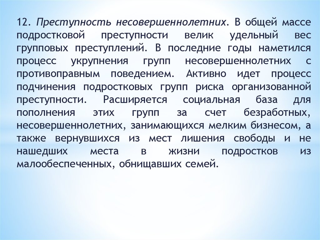 • устойчивую преступность, в происхождении которой