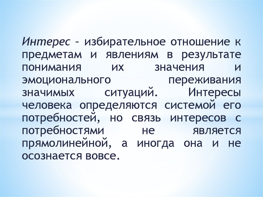 Интерес – избирательное отношение кпредметам и явлениям в результате