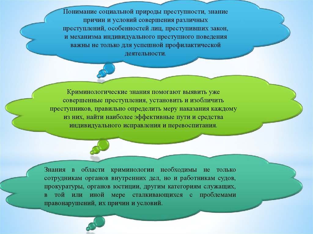 Понимание социальной природы преступности, знаниепричин и условий совершения различных