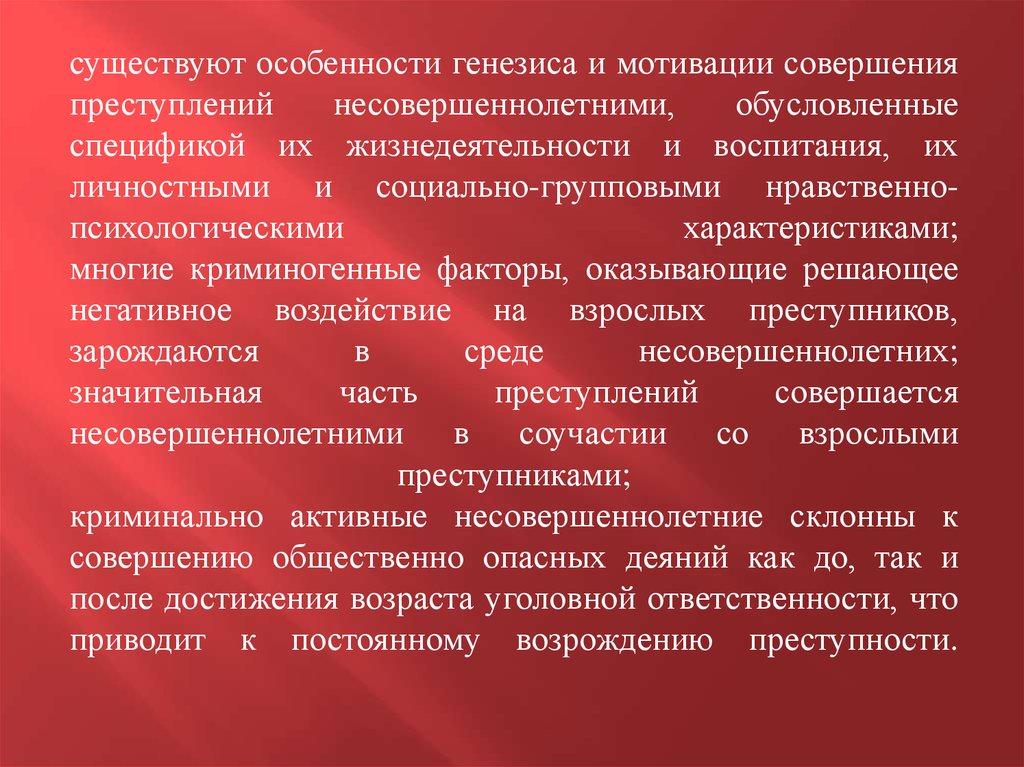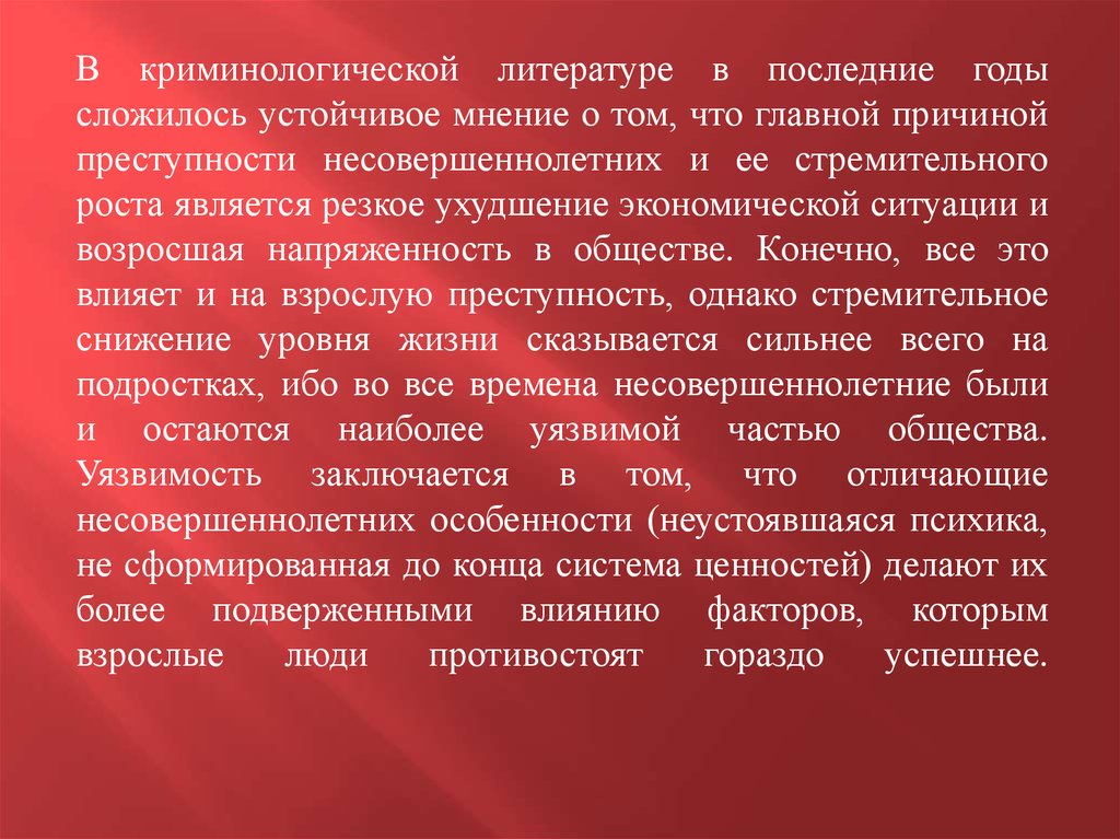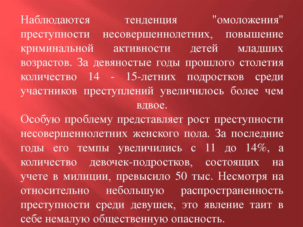 Одной из криминологических особенностей преступностинесовершеннолетних является ее относительно плавный