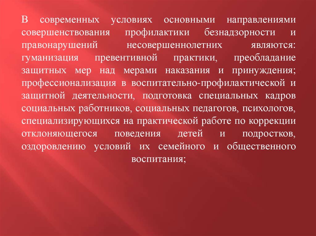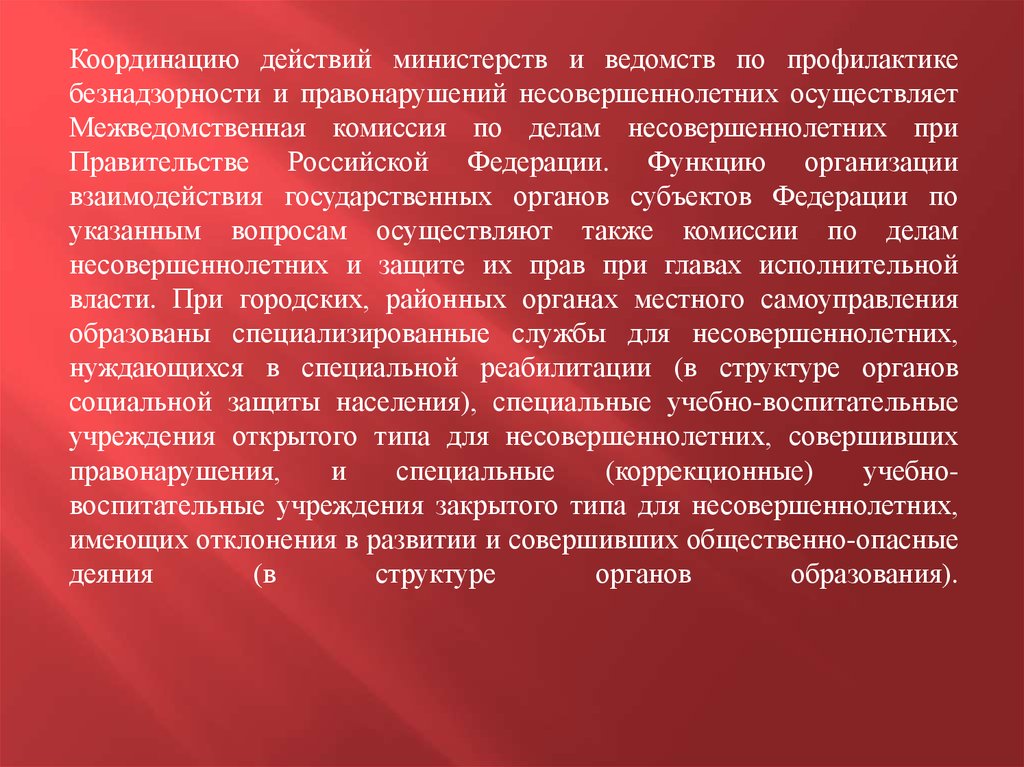 ликвидации безнадзорности несовершеннолетних (своеобразного