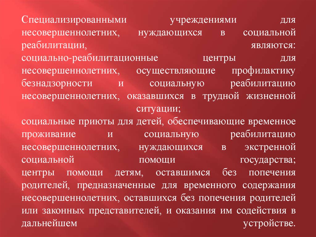 социальные и медико-психологические центры.