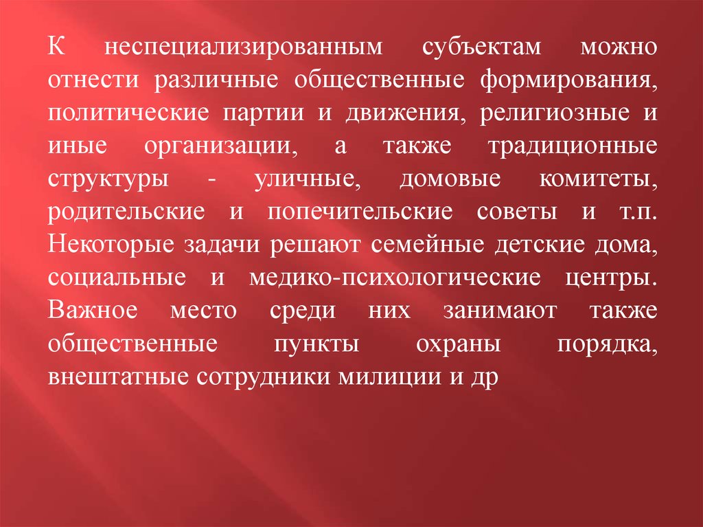 К неспециализированным субъектам можноотнести различные общественные формирования,