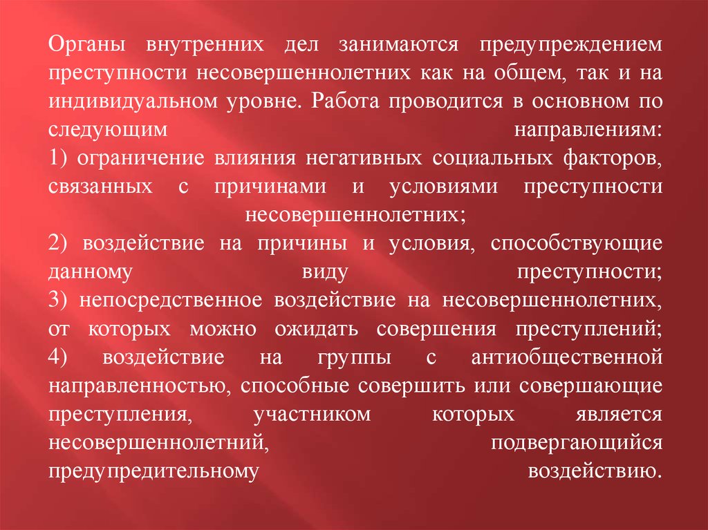 Органы внутренних дел занимаются предупреждениемпреступности несовершеннолетних как на общем, так и на
