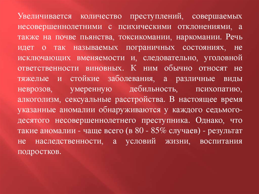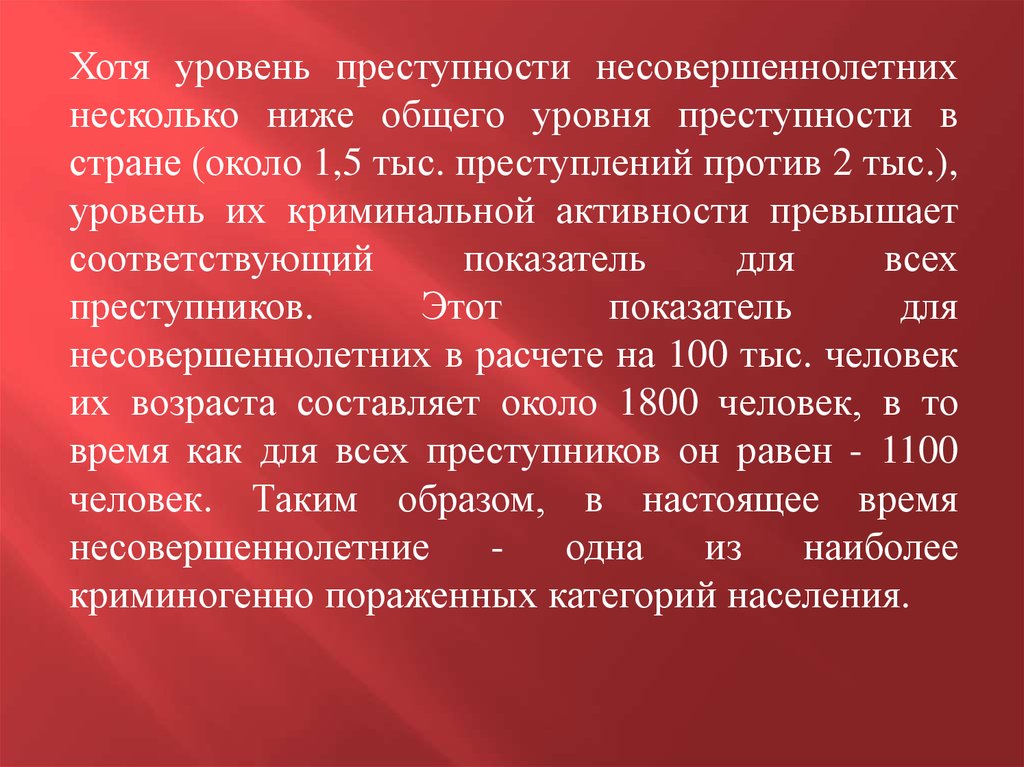 Хотя уровень преступности несовершеннолетнихнесколько ниже общего уровня преступности в