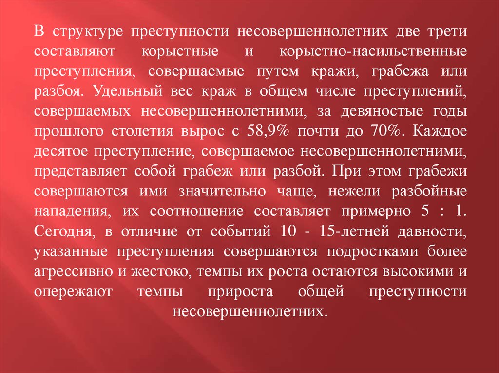 1. Криминологическая характеристика преступности несовершеннолетних