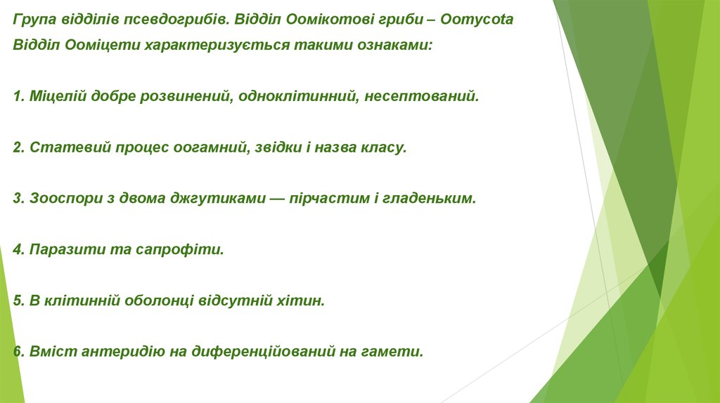 Група відділів псевдогрибів. Відділ Оомікотові гриби – OomycotaВідділ Ооміцети характеризується такими ознаками: