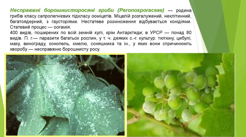маку, винограду, конопель, хмелю, соняшника та ін., у яких вони спричинюють