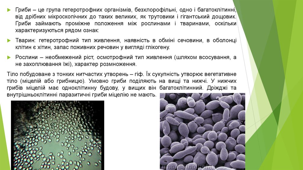 грибів міцелій має одноклітинну будову, у вищих він багатоклітинний. Дріжджі та