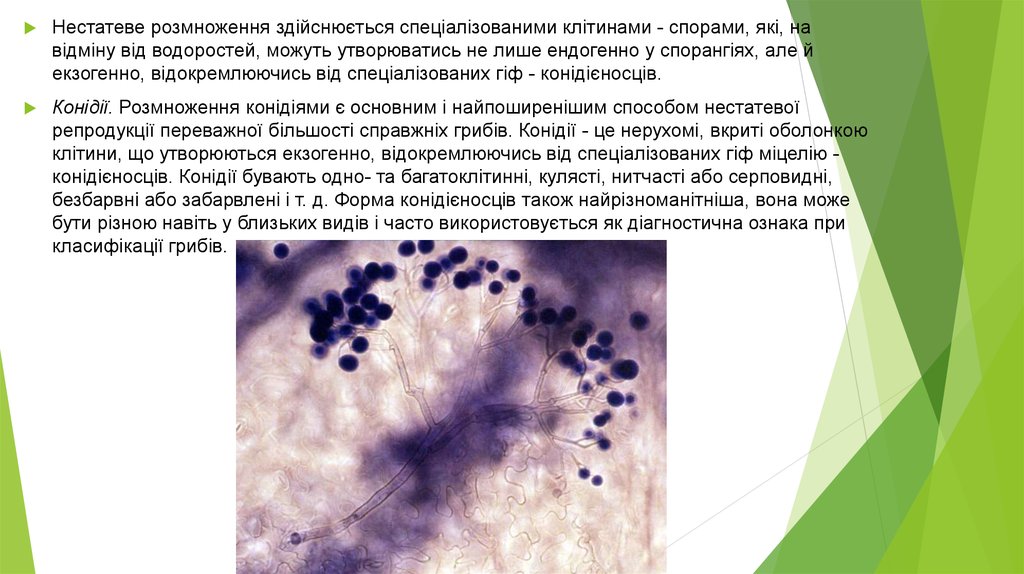 репродукції переважної більшості справжніх грибів. Конідії - це нерухомі, вкриті оболонкою