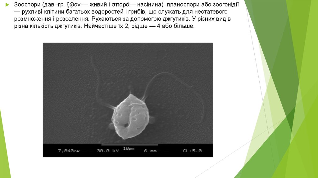 3. Зооспори з двома джгутиками — пірчастим і гладеньким.