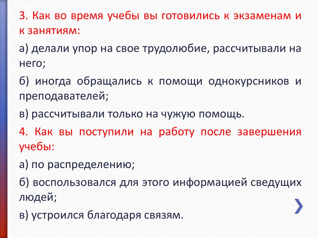 3. Как во время учебы вы готовились к экзаменам ик занятиям: