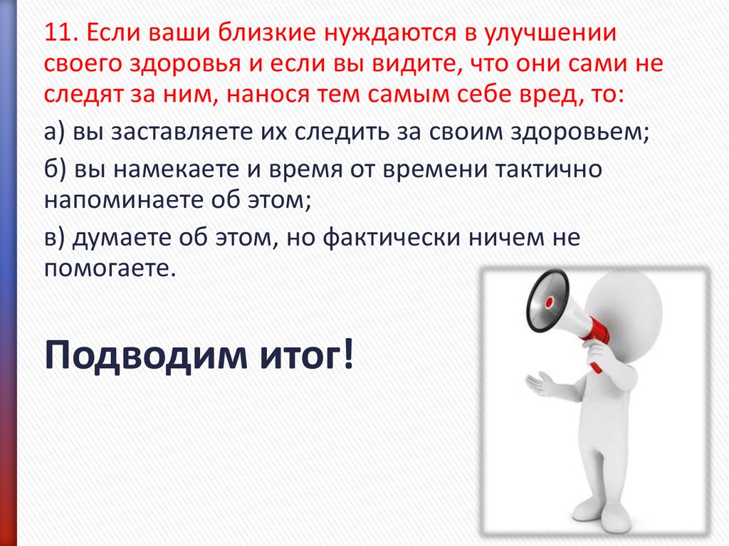 11. Если ваши близкие нуждаются в улучшениисвоего здоровья и если вы видите, что они сами не