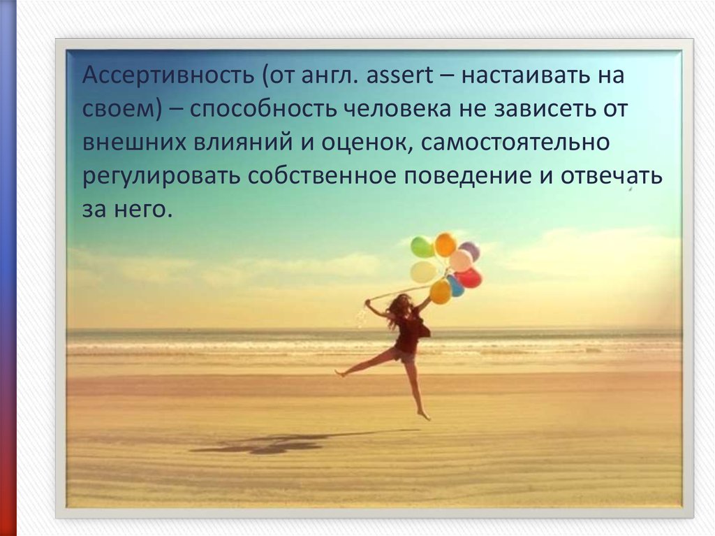 Ассертивность (от англ. assert – настаивать насвоем) – способность человека не зависеть от